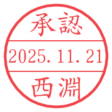 オプションの「電子透かし」をチェックし[生成]すると、見た目には分からないように、UNIXタイムスタンプを識別情報としてPNG形式の日付印に埋め込みます。 日付スタンプメーカーの使い方「部署」「名前」は最大8文字まで入力が可能です。「スタンプの色」を選択し、[生成]ボタン押下で印影画像が更新され、背景を透明に設定したPNG形式とPDF形式の印影画像がリンクからダウンロードできます。 オプションの「電子透かし」は、その性格上日付印ととても相性の良い付加サービスです。 別ページの「タイムスタンプと電子透かし」でも詳しく解説しますが、このオプションを追加することで、日付印が生成された日時に確かにその印が存在していることが証明されます。 ![]() 西淵さんの電子印鑑が作れます。社内でのデータ書類閲覧確認用など、認印的な使い方のできる電子印鑑が作れます。 ![]() 古代文字で落款印が作れます。「落款スタンプメーカー」で作品を引き立たせる落款印が作れます。