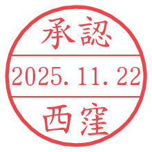 オプションの「電子透かし」をチェックし[生成]すると、見た目には分からないように、UNIXタイムスタンプを識別情報としてPNG形式の日付印に埋め込みます。 日付スタンプメーカーの使い方「部署」「名前」は最大8文字まで入力が可能です。「スタンプの色」を選択し、[生成]ボタン押下で印影画像が更新され、背景を透明に設定したPNG形式とPDF形式の印影画像がリンクからダウンロードできます。 オプションの「電子透かし」は、その性格上日付印ととても相性の良い付加サービスです。 別ページの「タイムスタンプと電子透かし」でも詳しく解説しますが、このオプションを追加することで、日付印が生成された日時に確かにその印が存在していることが証明されます。 ![]() 西窪さんの電子印鑑が作れます。社内でのデータ書類閲覧確認用など、認印的な使い方のできる電子印鑑が作れます。 ![]() 古代文字で落款印が作れます。「落款スタンプメーカー」で作品を引き立たせる落款印が作れます。