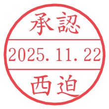 オプションの「電子透かし」をチェックし[生成]すると、見た目には分からないように、UNIXタイムスタンプを識別情報としてPNG形式の日付印に埋め込みます。 日付スタンプメーカーの使い方「部署」「名前」は最大8文字まで入力が可能です。「スタンプの色」を選択し、[生成]ボタン押下で印影画像が更新され、背景を透明に設定したPNG形式とPDF形式の印影画像がリンクからダウンロードできます。 オプションの「電子透かし」は、その性格上日付印ととても相性の良い付加サービスです。 別ページの「タイムスタンプと電子透かし」でも詳しく解説しますが、このオプションを追加することで、日付印が生成された日時に確かにその印が存在していることが証明されます。 ![]() 西迫さんの電子印鑑が作れます。社内でのデータ書類閲覧確認用など、認印的な使い方のできる電子印鑑が作れます。 ![]() 古代文字で落款印が作れます。「落款スタンプメーカー」で作品を引き立たせる落款印が作れます。