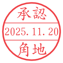 オプションの「電子透かし」をチェックし[生成]すると、見た目には分からないように、UNIXタイムスタンプを識別情報としてPNG形式の日付印に埋め込みます。 日付スタンプメーカーの使い方「部署」「名前」は最大8文字まで入力が可能です。「スタンプの色」を選択し、[生成]ボタン押下で印影画像が更新され、背景を透明に設定したPNG形式とPDF形式の印影画像がリンクからダウンロードできます。 オプションの「電子透かし」は、その性格上日付印ととても相性の良い付加サービスです。 別ページの「タイムスタンプと電子透かし」でも詳しく解説しますが、このオプションを追加することで、日付印が生成された日時に確かにその印が存在していることが証明されます。 ![]() 角地さんの電子印鑑が作れます。社内でのデータ書類閲覧確認用など、認印的な使い方のできる電子印鑑が作れます。 ![]() 古代文字で落款印が作れます。「落款スタンプメーカー」で作品を引き立たせる落款印が作れます。