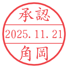 オプションの「電子透かし」をチェックし[生成]すると、見た目には分からないように、UNIXタイムスタンプを識別情報としてPNG形式の日付印に埋め込みます。 日付スタンプメーカーの使い方「部署」「名前」は最大8文字まで入力が可能です。「スタンプの色」を選択し、[生成]ボタン押下で印影画像が更新され、背景を透明に設定したPNG形式とPDF形式の印影画像がリンクからダウンロードできます。 オプションの「電子透かし」は、その性格上日付印ととても相性の良い付加サービスです。 別ページの「タイムスタンプと電子透かし」でも詳しく解説しますが、このオプションを追加することで、日付印が生成された日時に確かにその印が存在していることが証明されます。 ![]() 角岡さんの電子印鑑が作れます。社内でのデータ書類閲覧確認用など、認印的な使い方のできる電子印鑑が作れます。 ![]() 古代文字で落款印が作れます。「落款スタンプメーカー」で作品を引き立たせる落款印が作れます。
