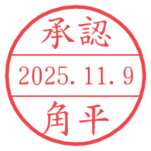 オプションの「電子透かし」をチェックし[生成]すると、見た目には分からないように、UNIXタイムスタンプを識別情報としてPNG形式の日付印に埋め込みます。 日付スタンプメーカーの使い方「部署」「名前」は最大8文字まで入力が可能です。「スタンプの色」を選択し、[生成]ボタン押下で印影画像が更新され、背景を透明に設定したPNG形式とPDF形式の印影画像がリンクからダウンロードできます。 オプションの「電子透かし」は、その性格上日付印ととても相性の良い付加サービスです。 別ページの「タイムスタンプと電子透かし」でも詳しく解説しますが、このオプションを追加することで、日付印が生成された日時に確かにその印が存在していることが証明されます。 ![]() 角平さんの電子印鑑が作れます。社内でのデータ書類閲覧確認用など、認印的な使い方のできる電子印鑑が作れます。 ![]() 古代文字で落款印が作れます。「落款スタンプメーカー」で作品を引き立たせる落款印が作れます。