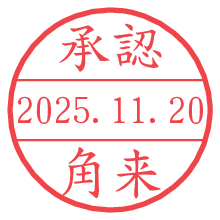 オプションの「電子透かし」をチェックし[生成]すると、見た目には分からないように、UNIXタイムスタンプを識別情報としてPNG形式の日付印に埋め込みます。 日付スタンプメーカーの使い方「部署」「名前」は最大8文字まで入力が可能です。「スタンプの色」を選択し、[生成]ボタン押下で印影画像が更新され、背景を透明に設定したPNG形式とPDF形式の印影画像がリンクからダウンロードできます。 オプションの「電子透かし」は、その性格上日付印ととても相性の良い付加サービスです。 別ページの「タイムスタンプと電子透かし」でも詳しく解説しますが、このオプションを追加することで、日付印が生成された日時に確かにその印が存在していることが証明されます。 ![]() 角来さんの電子印鑑が作れます。社内でのデータ書類閲覧確認用など、認印的な使い方のできる電子印鑑が作れます。 ![]() 古代文字で落款印が作れます。「落款スタンプメーカー」で作品を引き立たせる落款印が作れます。