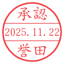 オプションの「電子透かし」をチェックし[生成]すると、見た目には分からないように、UNIXタイムスタンプを識別情報としてPNG形式の日付印に埋め込みます。 日付スタンプメーカーの使い方「部署」「名前」は最大8文字まで入力が可能です。「スタンプの色」を選択し、[生成]ボタン押下で印影画像が更新され、背景を透明に設定したPNG形式とPDF形式の印影画像がリンクからダウンロードできます。 オプションの「電子透かし」は、その性格上日付印ととても相性の良い付加サービスです。 別ページの「タイムスタンプと電子透かし」でも詳しく解説しますが、このオプションを追加することで、日付印が生成された日時に確かにその印が存在していることが証明されます。 ![]() 誉田さんの電子印鑑が作れます。社内でのデータ書類閲覧確認用など、認印的な使い方のできる電子印鑑が作れます。 ![]() 古代文字で落款印が作れます。「落款スタンプメーカー」で作品を引き立たせる落款印が作れます。
