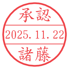 オプションの「電子透かし」をチェックし[生成]すると、見た目には分からないように、UNIXタイムスタンプを識別情報としてPNG形式の日付印に埋め込みます。 日付スタンプメーカーの使い方「部署」「名前」は最大8文字まで入力が可能です。「スタンプの色」を選択し、[生成]ボタン押下で印影画像が更新され、背景を透明に設定したPNG形式とPDF形式の印影画像がリンクからダウンロードできます。 オプションの「電子透かし」は、その性格上日付印ととても相性の良い付加サービスです。 別ページの「タイムスタンプと電子透かし」でも詳しく解説しますが、このオプションを追加することで、日付印が生成された日時に確かにその印が存在していることが証明されます。 ![]() 諸藤さんの電子印鑑が作れます。社内でのデータ書類閲覧確認用など、認印的な使い方のできる電子印鑑が作れます。 ![]() 古代文字で落款印が作れます。「落款スタンプメーカー」で作品を引き立たせる落款印が作れます。