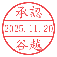 オプションの「電子透かし」をチェックし[生成]すると、見た目には分からないように、UNIXタイムスタンプを識別情報としてPNG形式の日付印に埋め込みます。 日付スタンプメーカーの使い方「部署」「名前」は最大8文字まで入力が可能です。「スタンプの色」を選択し、[生成]ボタン押下で印影画像が更新され、背景を透明に設定したPNG形式とPDF形式の印影画像がリンクからダウンロードできます。 オプションの「電子透かし」は、その性格上日付印ととても相性の良い付加サービスです。 別ページの「タイムスタンプと電子透かし」でも詳しく解説しますが、このオプションを追加することで、日付印が生成された日時に確かにその印が存在していることが証明されます。 ![]() 谷越さんの電子印鑑が作れます。社内でのデータ書類閲覧確認用など、認印的な使い方のできる電子印鑑が作れます。 ![]() 古代文字で落款印が作れます。「落款スタンプメーカー」で作品を引き立たせる落款印が作れます。