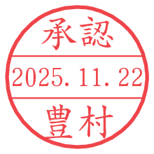 オプションの「電子透かし」をチェックし[生成]すると、見た目には分からないように、UNIXタイムスタンプを識別情報としてPNG形式の日付印に埋め込みます。 日付スタンプメーカーの使い方「部署」「名前」は最大8文字まで入力が可能です。「スタンプの色」を選択し、[生成]ボタン押下で印影画像が更新され、背景を透明に設定したPNG形式とPDF形式の印影画像がリンクからダウンロードできます。 オプションの「電子透かし」は、その性格上日付印ととても相性の良い付加サービスです。 別ページの「タイムスタンプと電子透かし」でも詳しく解説しますが、このオプションを追加することで、日付印が生成された日時に確かにその印が存在していることが証明されます。 ![]() 豊村さんの電子印鑑が作れます。社内でのデータ書類閲覧確認用など、認印的な使い方のできる電子印鑑が作れます。 ![]() 古代文字で落款印が作れます。「落款スタンプメーカー」で作品を引き立たせる落款印が作れます。