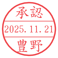 オプションの「電子透かし」をチェックし[生成]すると、見た目には分からないように、UNIXタイムスタンプを識別情報としてPNG形式の日付印に埋め込みます。 日付スタンプメーカーの使い方「部署」「名前」は最大8文字まで入力が可能です。「スタンプの色」を選択し、[生成]ボタン押下で印影画像が更新され、背景を透明に設定したPNG形式とPDF形式の印影画像がリンクからダウンロードできます。 オプションの「電子透かし」は、その性格上日付印ととても相性の良い付加サービスです。 別ページの「タイムスタンプと電子透かし」でも詳しく解説しますが、このオプションを追加することで、日付印が生成された日時に確かにその印が存在していることが証明されます。 ![]() 豊野さんの電子印鑑が作れます。社内でのデータ書類閲覧確認用など、認印的な使い方のできる電子印鑑が作れます。 ![]() 古代文字で落款印が作れます。「落款スタンプメーカー」で作品を引き立たせる落款印が作れます。