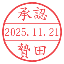 オプションの「電子透かし」をチェックし[生成]すると、見た目には分からないように、UNIXタイムスタンプを識別情報としてPNG形式の日付印に埋め込みます。 日付スタンプメーカーの使い方「部署」「名前」は最大8文字まで入力が可能です。「スタンプの色」を選択し、[生成]ボタン押下で印影画像が更新され、背景を透明に設定したPNG形式とPDF形式の印影画像がリンクからダウンロードできます。 オプションの「電子透かし」は、その性格上日付印ととても相性の良い付加サービスです。 別ページの「タイムスタンプと電子透かし」でも詳しく解説しますが、このオプションを追加することで、日付印が生成された日時に確かにその印が存在していることが証明されます。 ![]() 贄田さんの電子印鑑が作れます。社内でのデータ書類閲覧確認用など、認印的な使い方のできる電子印鑑が作れます。 ![]() 古代文字で落款印が作れます。「落款スタンプメーカー」で作品を引き立たせる落款印が作れます。