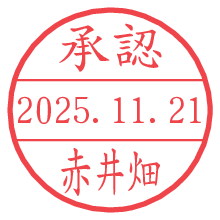 オプションの「電子透かし」をチェックし[生成]すると、見た目には分からないように、UNIXタイムスタンプを識別情報としてPNG形式の日付印に埋め込みます。 日付スタンプメーカーの使い方「部署」「名前」は最大8文字まで入力が可能です。「スタンプの色」を選択し、[生成]ボタン押下で印影画像が更新され、背景を透明に設定したPNG形式とPDF形式の印影画像がリンクからダウンロードできます。 オプションの「電子透かし」は、その性格上日付印ととても相性の良い付加サービスです。 別ページの「タイムスタンプと電子透かし」でも詳しく解説しますが、このオプションを追加することで、日付印が生成された日時に確かにその印が存在していることが証明されます。 ![]() 赤井畑さんの電子印鑑が作れます。社内でのデータ書類閲覧確認用など、認印的な使い方のできる電子印鑑が作れます。 ![]() 古代文字で落款印が作れます。「落款スタンプメーカー」で作品を引き立たせる落款印が作れます。