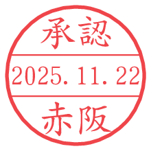 オプションの「電子透かし」をチェックし[生成]すると、見た目には分からないように、UNIXタイムスタンプを識別情報としてPNG形式の日付印に埋め込みます。 日付スタンプメーカーの使い方「部署」「名前」は最大8文字まで入力が可能です。「スタンプの色」を選択し、[生成]ボタン押下で印影画像が更新され、背景を透明に設定したPNG形式とPDF形式の印影画像がリンクからダウンロードできます。 オプションの「電子透かし」は、その性格上日付印ととても相性の良い付加サービスです。 別ページの「タイムスタンプと電子透かし」でも詳しく解説しますが、このオプションを追加することで、日付印が生成された日時に確かにその印が存在していることが証明されます。 ![]() 赤阪さんの電子印鑑が作れます。社内でのデータ書類閲覧確認用など、認印的な使い方のできる電子印鑑が作れます。 ![]() 古代文字で落款印が作れます。「落款スタンプメーカー」で作品を引き立たせる落款印が作れます。