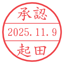 オプションの「電子透かし」をチェックし[生成]すると、見た目には分からないように、UNIXタイムスタンプを識別情報としてPNG形式の日付印に埋め込みます。 日付スタンプメーカーの使い方「部署」「名前」は最大8文字まで入力が可能です。「スタンプの色」を選択し、[生成]ボタン押下で印影画像が更新され、背景を透明に設定したPNG形式とPDF形式の印影画像がリンクからダウンロードできます。 オプションの「電子透かし」は、その性格上日付印ととても相性の良い付加サービスです。 別ページの「タイムスタンプと電子透かし」でも詳しく解説しますが、このオプションを追加することで、日付印が生成された日時に確かにその印が存在していることが証明されます。 ![]() 起田さんの電子印鑑が作れます。社内でのデータ書類閲覧確認用など、認印的な使い方のできる電子印鑑が作れます。 ![]() 古代文字で落款印が作れます。「落款スタンプメーカー」で作品を引き立たせる落款印が作れます。