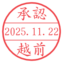 オプションの「電子透かし」をチェックし[生成]すると、見た目には分からないように、UNIXタイムスタンプを識別情報としてPNG形式の日付印に埋め込みます。 日付スタンプメーカーの使い方「部署」「名前」は最大8文字まで入力が可能です。「スタンプの色」を選択し、[生成]ボタン押下で印影画像が更新され、背景を透明に設定したPNG形式とPDF形式の印影画像がリンクからダウンロードできます。 オプションの「電子透かし」は、その性格上日付印ととても相性の良い付加サービスです。 別ページの「タイムスタンプと電子透かし」でも詳しく解説しますが、このオプションを追加することで、日付印が生成された日時に確かにその印が存在していることが証明されます。 ![]() 越前さんの電子印鑑が作れます。社内でのデータ書類閲覧確認用など、認印的な使い方のできる電子印鑑が作れます。 ![]() 古代文字で落款印が作れます。「落款スタンプメーカー」で作品を引き立たせる落款印が作れます。