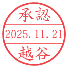 オプションの「電子透かし」をチェックし[生成]すると、見た目には分からないように、UNIXタイムスタンプを識別情報としてPNG形式の日付印に埋め込みます。 日付スタンプメーカーの使い方「部署」「名前」は最大8文字まで入力が可能です。「スタンプの色」を選択し、[生成]ボタン押下で印影画像が更新され、背景を透明に設定したPNG形式とPDF形式の印影画像がリンクからダウンロードできます。 オプションの「電子透かし」は、その性格上日付印ととても相性の良い付加サービスです。 別ページの「タイムスタンプと電子透かし」でも詳しく解説しますが、このオプションを追加することで、日付印が生成された日時に確かにその印が存在していることが証明されます。 ![]() 越谷さんの電子印鑑が作れます。社内でのデータ書類閲覧確認用など、認印的な使い方のできる電子印鑑が作れます。 ![]() 古代文字で落款印が作れます。「落款スタンプメーカー」で作品を引き立たせる落款印が作れます。