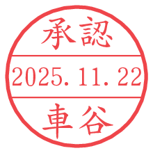 オプションの「電子透かし」をチェックし[生成]すると、見た目には分からないように、UNIXタイムスタンプを識別情報としてPNG形式の日付印に埋め込みます。 日付スタンプメーカーの使い方「部署」「名前」は最大8文字まで入力が可能です。「スタンプの色」を選択し、[生成]ボタン押下で印影画像が更新され、背景を透明に設定したPNG形式とPDF形式の印影画像がリンクからダウンロードできます。 オプションの「電子透かし」は、その性格上日付印ととても相性の良い付加サービスです。 別ページの「タイムスタンプと電子透かし」でも詳しく解説しますが、このオプションを追加することで、日付印が生成された日時に確かにその印が存在していることが証明されます。 ![]() 車谷さんの電子印鑑が作れます。社内でのデータ書類閲覧確認用など、認印的な使い方のできる電子印鑑が作れます。 ![]() 古代文字で落款印が作れます。「落款スタンプメーカー」で作品を引き立たせる落款印が作れます。