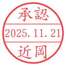 オプションの「電子透かし」をチェックし[生成]すると、見た目には分からないように、UNIXタイムスタンプを識別情報としてPNG形式の日付印に埋め込みます。 日付スタンプメーカーの使い方「部署」「名前」は最大8文字まで入力が可能です。「スタンプの色」を選択し、[生成]ボタン押下で印影画像が更新され、背景を透明に設定したPNG形式とPDF形式の印影画像がリンクからダウンロードできます。 オプションの「電子透かし」は、その性格上日付印ととても相性の良い付加サービスです。 別ページの「タイムスタンプと電子透かし」でも詳しく解説しますが、このオプションを追加することで、日付印が生成された日時に確かにその印が存在していることが証明されます。 ![]() 近岡さんの電子印鑑が作れます。社内でのデータ書類閲覧確認用など、認印的な使い方のできる電子印鑑が作れます。 ![]() 古代文字で落款印が作れます。「落款スタンプメーカー」で作品を引き立たせる落款印が作れます。