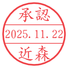 オプションの「電子透かし」をチェックし[生成]すると、見た目には分からないように、UNIXタイムスタンプを識別情報としてPNG形式の日付印に埋め込みます。 日付スタンプメーカーの使い方「部署」「名前」は最大8文字まで入力が可能です。「スタンプの色」を選択し、[生成]ボタン押下で印影画像が更新され、背景を透明に設定したPNG形式とPDF形式の印影画像がリンクからダウンロードできます。 オプションの「電子透かし」は、その性格上日付印ととても相性の良い付加サービスです。 別ページの「タイムスタンプと電子透かし」でも詳しく解説しますが、このオプションを追加することで、日付印が生成された日時に確かにその印が存在していることが証明されます。 ![]() 近森さんの電子印鑑が作れます。社内でのデータ書類閲覧確認用など、認印的な使い方のできる電子印鑑が作れます。 ![]() 古代文字で落款印が作れます。「落款スタンプメーカー」で作品を引き立たせる落款印が作れます。