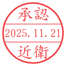 オプションの「電子透かし」をチェックし[生成]すると、見た目には分からないように、UNIXタイムスタンプを識別情報としてPNG形式の日付印に埋め込みます。 日付スタンプメーカーの使い方「部署」「名前」は最大8文字まで入力が可能です。「スタンプの色」を選択し、[生成]ボタン押下で印影画像が更新され、背景を透明に設定したPNG形式とPDF形式の印影画像がリンクからダウンロードできます。 オプションの「電子透かし」は、その性格上日付印ととても相性の良い付加サービスです。 別ページの「タイムスタンプと電子透かし」でも詳しく解説しますが、このオプションを追加することで、日付印が生成された日時に確かにその印が存在していることが証明されます。 ![]() 近衛さんの電子印鑑が作れます。社内でのデータ書類閲覧確認用など、認印的な使い方のできる電子印鑑が作れます。 ![]() 古代文字で落款印が作れます。「落款スタンプメーカー」で作品を引き立たせる落款印が作れます。
