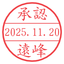 オプションの「電子透かし」をチェックし[生成]すると、見た目には分からないように、UNIXタイムスタンプを識別情報としてPNG形式の日付印に埋め込みます。 日付スタンプメーカーの使い方「部署」「名前」は最大8文字まで入力が可能です。「スタンプの色」を選択し、[生成]ボタン押下で印影画像が更新され、背景を透明に設定したPNG形式とPDF形式の印影画像がリンクからダウンロードできます。 オプションの「電子透かし」は、その性格上日付印ととても相性の良い付加サービスです。 別ページの「タイムスタンプと電子透かし」でも詳しく解説しますが、このオプションを追加することで、日付印が生成された日時に確かにその印が存在していることが証明されます。 ![]() 遠峰さんの電子印鑑が作れます。社内でのデータ書類閲覧確認用など、認印的な使い方のできる電子印鑑が作れます。 ![]() 古代文字で落款印が作れます。「落款スタンプメーカー」で作品を引き立たせる落款印が作れます。