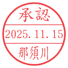 オプションの「電子透かし」をチェックし[生成]すると、見た目には分からないように、UNIXタイムスタンプを識別情報としてPNG形式の日付印に埋め込みます。 日付スタンプメーカーの使い方「部署」「名前」は最大8文字まで入力が可能です。「スタンプの色」を選択し、[生成]ボタン押下で印影画像が更新され、背景を透明に設定したPNG形式とPDF形式の印影画像がリンクからダウンロードできます。 オプションの「電子透かし」は、その性格上日付印ととても相性の良い付加サービスです。 別ページの「タイムスタンプと電子透かし」でも詳しく解説しますが、このオプションを追加することで、日付印が生成された日時に確かにその印が存在していることが証明されます。 ![]() 那須川さんの電子印鑑が作れます。社内でのデータ書類閲覧確認用など、認印的な使い方のできる電子印鑑が作れます。 ![]() 古代文字で落款印が作れます。「落款スタンプメーカー」で作品を引き立たせる落款印が作れます。