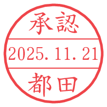 オプションの「電子透かし」をチェックし[生成]すると、見た目には分からないように、UNIXタイムスタンプを識別情報としてPNG形式の日付印に埋め込みます。 日付スタンプメーカーの使い方「部署」「名前」は最大8文字まで入力が可能です。「スタンプの色」を選択し、[生成]ボタン押下で印影画像が更新され、背景を透明に設定したPNG形式とPDF形式の印影画像がリンクからダウンロードできます。 オプションの「電子透かし」は、その性格上日付印ととても相性の良い付加サービスです。 別ページの「タイムスタンプと電子透かし」でも詳しく解説しますが、このオプションを追加することで、日付印が生成された日時に確かにその印が存在していることが証明されます。 ![]() 都田さんの電子印鑑が作れます。社内でのデータ書類閲覧確認用など、認印的な使い方のできる電子印鑑が作れます。 ![]() 古代文字で落款印が作れます。「落款スタンプメーカー」で作品を引き立たせる落款印が作れます。