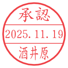 オプションの「電子透かし」をチェックし[生成]すると、見た目には分からないように、UNIXタイムスタンプを識別情報としてPNG形式の日付印に埋め込みます。 日付スタンプメーカーの使い方「部署」「名前」は最大8文字まで入力が可能です。「スタンプの色」を選択し、[生成]ボタン押下で印影画像が更新され、背景を透明に設定したPNG形式とPDF形式の印影画像がリンクからダウンロードできます。 オプションの「電子透かし」は、その性格上日付印ととても相性の良い付加サービスです。 別ページの「タイムスタンプと電子透かし」でも詳しく解説しますが、このオプションを追加することで、日付印が生成された日時に確かにその印が存在していることが証明されます。 ![]() 酒井原さんの電子印鑑が作れます。社内でのデータ書類閲覧確認用など、認印的な使い方のできる電子印鑑が作れます。 ![]() 古代文字で落款印が作れます。「落款スタンプメーカー」で作品を引き立たせる落款印が作れます。