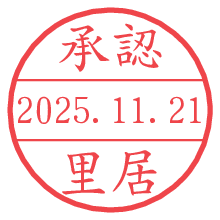 オプションの「電子透かし」をチェックし[生成]すると、見た目には分からないように、UNIXタイムスタンプを識別情報としてPNG形式の日付印に埋め込みます。 日付スタンプメーカーの使い方「部署」「名前」は最大8文字まで入力が可能です。「スタンプの色」を選択し、[生成]ボタン押下で印影画像が更新され、背景を透明に設定したPNG形式とPDF形式の印影画像がリンクからダウンロードできます。 オプションの「電子透かし」は、その性格上日付印ととても相性の良い付加サービスです。 別ページの「タイムスタンプと電子透かし」でも詳しく解説しますが、このオプションを追加することで、日付印が生成された日時に確かにその印が存在していることが証明されます。 ![]() 里居さんの電子印鑑が作れます。社内でのデータ書類閲覧確認用など、認印的な使い方のできる電子印鑑が作れます。 ![]() 古代文字で落款印が作れます。「落款スタンプメーカー」で作品を引き立たせる落款印が作れます。