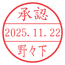 オプションの「電子透かし」をチェックし[生成]すると、見た目には分からないように、UNIXタイムスタンプを識別情報としてPNG形式の日付印に埋め込みます。 日付スタンプメーカーの使い方「部署」「名前」は最大8文字まで入力が可能です。「スタンプの色」を選択し、[生成]ボタン押下で印影画像が更新され、背景を透明に設定したPNG形式とPDF形式の印影画像がリンクからダウンロードできます。 オプションの「電子透かし」は、その性格上日付印ととても相性の良い付加サービスです。 別ページの「タイムスタンプと電子透かし」でも詳しく解説しますが、このオプションを追加することで、日付印が生成された日時に確かにその印が存在していることが証明されます。 ![]() 野々下さんの電子印鑑が作れます。社内でのデータ書類閲覧確認用など、認印的な使い方のできる電子印鑑が作れます。 ![]() 古代文字で落款印が作れます。「落款スタンプメーカー」で作品を引き立たせる落款印が作れます。
