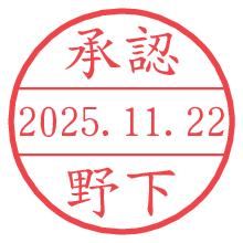 オプションの「電子透かし」をチェックし[生成]すると、見た目には分からないように、UNIXタイムスタンプを識別情報としてPNG形式の日付印に埋め込みます。 日付スタンプメーカーの使い方「部署」「名前」は最大8文字まで入力が可能です。「スタンプの色」を選択し、[生成]ボタン押下で印影画像が更新され、背景を透明に設定したPNG形式とPDF形式の印影画像がリンクからダウンロードできます。 オプションの「電子透かし」は、その性格上日付印ととても相性の良い付加サービスです。 別ページの「タイムスタンプと電子透かし」でも詳しく解説しますが、このオプションを追加することで、日付印が生成された日時に確かにその印が存在していることが証明されます。 ![]() 野下さんの電子印鑑が作れます。社内でのデータ書類閲覧確認用など、認印的な使い方のできる電子印鑑が作れます。 ![]() 古代文字で落款印が作れます。「落款スタンプメーカー」で作品を引き立たせる落款印が作れます。