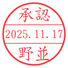 オプションの「電子透かし」をチェックし[生成]すると、見た目には分からないように、UNIXタイムスタンプを識別情報としてPNG形式の日付印に埋め込みます。 日付スタンプメーカーの使い方「部署」「名前」は最大8文字まで入力が可能です。「スタンプの色」を選択し、[生成]ボタン押下で印影画像が更新され、背景を透明に設定したPNG形式とPDF形式の印影画像がリンクからダウンロードできます。 オプションの「電子透かし」は、その性格上日付印ととても相性の良い付加サービスです。 別ページの「タイムスタンプと電子透かし」でも詳しく解説しますが、このオプションを追加することで、日付印が生成された日時に確かにその印が存在していることが証明されます。 ![]() 野並さんの電子印鑑が作れます。社内でのデータ書類閲覧確認用など、認印的な使い方のできる電子印鑑が作れます。 ![]() 古代文字で落款印が作れます。「落款スタンプメーカー」で作品を引き立たせる落款印が作れます。