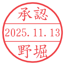 オプションの「電子透かし」をチェックし[生成]すると、見た目には分からないように、UNIXタイムスタンプを識別情報としてPNG形式の日付印に埋め込みます。 日付スタンプメーカーの使い方「部署」「名前」は最大8文字まで入力が可能です。「スタンプの色」を選択し、[生成]ボタン押下で印影画像が更新され、背景を透明に設定したPNG形式とPDF形式の印影画像がリンクからダウンロードできます。 オプションの「電子透かし」は、その性格上日付印ととても相性の良い付加サービスです。 別ページの「タイムスタンプと電子透かし」でも詳しく解説しますが、このオプションを追加することで、日付印が生成された日時に確かにその印が存在していることが証明されます。 ![]() 野堀さんの電子印鑑が作れます。社内でのデータ書類閲覧確認用など、認印的な使い方のできる電子印鑑が作れます。 ![]() 古代文字で落款印が作れます。「落款スタンプメーカー」で作品を引き立たせる落款印が作れます。