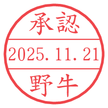 オプションの「電子透かし」をチェックし[生成]すると、見た目には分からないように、UNIXタイムスタンプを識別情報としてPNG形式の日付印に埋め込みます。 日付スタンプメーカーの使い方「部署」「名前」は最大8文字まで入力が可能です。「スタンプの色」を選択し、[生成]ボタン押下で印影画像が更新され、背景を透明に設定したPNG形式とPDF形式の印影画像がリンクからダウンロードできます。 オプションの「電子透かし」は、その性格上日付印ととても相性の良い付加サービスです。 別ページの「タイムスタンプと電子透かし」でも詳しく解説しますが、このオプションを追加することで、日付印が生成された日時に確かにその印が存在していることが証明されます。 ![]() 野牛さんの電子印鑑が作れます。社内でのデータ書類閲覧確認用など、認印的な使い方のできる電子印鑑が作れます。 ![]() 古代文字で落款印が作れます。「落款スタンプメーカー」で作品を引き立たせる落款印が作れます。