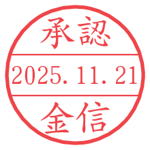 オプションの「電子透かし」をチェックし[生成]すると、見た目には分からないように、UNIXタイムスタンプを識別情報としてPNG形式の日付印に埋め込みます。 日付スタンプメーカーの使い方「部署」「名前」は最大8文字まで入力が可能です。「スタンプの色」を選択し、[生成]ボタン押下で印影画像が更新され、背景を透明に設定したPNG形式とPDF形式の印影画像がリンクからダウンロードできます。 オプションの「電子透かし」は、その性格上日付印ととても相性の良い付加サービスです。 別ページの「タイムスタンプと電子透かし」でも詳しく解説しますが、このオプションを追加することで、日付印が生成された日時に確かにその印が存在していることが証明されます。 ![]() 金信さんの電子印鑑が作れます。社内でのデータ書類閲覧確認用など、認印的な使い方のできる電子印鑑が作れます。 ![]() 古代文字で落款印が作れます。「落款スタンプメーカー」で作品を引き立たせる落款印が作れます。