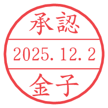 オプションの「電子透かし」をチェックし[生成]すると、見た目には分からないように、UNIXタイムスタンプを識別情報としてPNG形式の日付印に埋め込みます。 日付スタンプメーカーの使い方「部署」「名前」は最大8文字まで入力が可能です。「スタンプの色」を選択し、[生成]ボタン押下で印影画像が更新され、背景を透明に設定したPNG形式とPDF形式の印影画像がリンクからダウンロードできます。 オプションの「電子透かし」は、その性格上日付印ととても相性の良い付加サービスです。 別ページの「タイムスタンプと電子透かし」でも詳しく解説しますが、このオプションを追加することで、日付印が生成された日時に確かにその印が存在していることが証明されます。 ![]() 金子さんの電子印鑑が作れます。社内でのデータ書類閲覧確認用など、認印的な使い方のできる電子印鑑が作れます。 ![]() 古代文字で落款印が作れます。「落款スタンプメーカー」で作品を引き立たせる落款印が作れます。