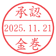 オプションの「電子透かし」をチェックし[生成]すると、見た目には分からないように、UNIXタイムスタンプを識別情報としてPNG形式の日付印に埋め込みます。 日付スタンプメーカーの使い方「部署」「名前」は最大8文字まで入力が可能です。「スタンプの色」を選択し、[生成]ボタン押下で印影画像が更新され、背景を透明に設定したPNG形式とPDF形式の印影画像がリンクからダウンロードできます。 オプションの「電子透かし」は、その性格上日付印ととても相性の良い付加サービスです。 別ページの「タイムスタンプと電子透かし」でも詳しく解説しますが、このオプションを追加することで、日付印が生成された日時に確かにその印が存在していることが証明されます。 ![]() 金巻さんの電子印鑑が作れます。社内でのデータ書類閲覧確認用など、認印的な使い方のできる電子印鑑が作れます。 ![]() 古代文字で落款印が作れます。「落款スタンプメーカー」で作品を引き立たせる落款印が作れます。
