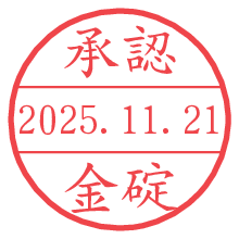 オプションの「電子透かし」をチェックし[生成]すると、見た目には分からないように、UNIXタイムスタンプを識別情報としてPNG形式の日付印に埋め込みます。 日付スタンプメーカーの使い方「部署」「名前」は最大8文字まで入力が可能です。「スタンプの色」を選択し、[生成]ボタン押下で印影画像が更新され、背景を透明に設定したPNG形式とPDF形式の印影画像がリンクからダウンロードできます。 オプションの「電子透かし」は、その性格上日付印ととても相性の良い付加サービスです。 別ページの「タイムスタンプと電子透かし」でも詳しく解説しますが、このオプションを追加することで、日付印が生成された日時に確かにその印が存在していることが証明されます。 ![]() 金碇さんの電子印鑑が作れます。社内でのデータ書類閲覧確認用など、認印的な使い方のできる電子印鑑が作れます。 ![]() 古代文字で落款印が作れます。「落款スタンプメーカー」で作品を引き立たせる落款印が作れます。