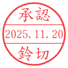 オプションの「電子透かし」をチェックし[生成]すると、見た目には分からないように、UNIXタイムスタンプを識別情報としてPNG形式の日付印に埋め込みます。 日付スタンプメーカーの使い方「部署」「名前」は最大8文字まで入力が可能です。「スタンプの色」を選択し、[生成]ボタン押下で印影画像が更新され、背景を透明に設定したPNG形式とPDF形式の印影画像がリンクからダウンロードできます。 オプションの「電子透かし」は、その性格上日付印ととても相性の良い付加サービスです。 別ページの「タイムスタンプと電子透かし」でも詳しく解説しますが、このオプションを追加することで、日付印が生成された日時に確かにその印が存在していることが証明されます。 ![]() 鈴切さんの電子印鑑が作れます。社内でのデータ書類閲覧確認用など、認印的な使い方のできる電子印鑑が作れます。 ![]() 古代文字で落款印が作れます。「落款スタンプメーカー」で作品を引き立たせる落款印が作れます。