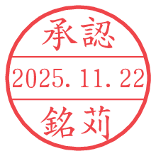 オプションの「電子透かし」をチェックし[生成]すると、見た目には分からないように、UNIXタイムスタンプを識別情報としてPNG形式の日付印に埋め込みます。 日付スタンプメーカーの使い方「部署」「名前」は最大8文字まで入力が可能です。「スタンプの色」を選択し、[生成]ボタン押下で印影画像が更新され、背景を透明に設定したPNG形式とPDF形式の印影画像がリンクからダウンロードできます。 オプションの「電子透かし」は、その性格上日付印ととても相性の良い付加サービスです。 別ページの「タイムスタンプと電子透かし」でも詳しく解説しますが、このオプションを追加することで、日付印が生成された日時に確かにその印が存在していることが証明されます。 ![]() 銘苅さんの電子印鑑が作れます。社内でのデータ書類閲覧確認用など、認印的な使い方のできる電子印鑑が作れます。 ![]() 古代文字で落款印が作れます。「落款スタンプメーカー」で作品を引き立たせる落款印が作れます。