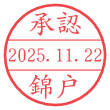オプションの「電子透かし」をチェックし[生成]すると、見た目には分からないように、UNIXタイムスタンプを識別情報としてPNG形式の日付印に埋め込みます。 日付スタンプメーカーの使い方「部署」「名前」は最大8文字まで入力が可能です。「スタンプの色」を選択し、[生成]ボタン押下で印影画像が更新され、背景を透明に設定したPNG形式とPDF形式の印影画像がリンクからダウンロードできます。 オプションの「電子透かし」は、その性格上日付印ととても相性の良い付加サービスです。 別ページの「タイムスタンプと電子透かし」でも詳しく解説しますが、このオプションを追加することで、日付印が生成された日時に確かにその印が存在していることが証明されます。 ![]() 錦戸さんの電子印鑑が作れます。社内でのデータ書類閲覧確認用など、認印的な使い方のできる電子印鑑が作れます。 ![]() 古代文字で落款印が作れます。「落款スタンプメーカー」で作品を引き立たせる落款印が作れます。
