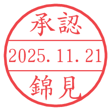 オプションの「電子透かし」をチェックし[生成]すると、見た目には分からないように、UNIXタイムスタンプを識別情報としてPNG形式の日付印に埋め込みます。 日付スタンプメーカーの使い方「部署」「名前」は最大8文字まで入力が可能です。「スタンプの色」を選択し、[生成]ボタン押下で印影画像が更新され、背景を透明に設定したPNG形式とPDF形式の印影画像がリンクからダウンロードできます。 オプションの「電子透かし」は、その性格上日付印ととても相性の良い付加サービスです。 別ページの「タイムスタンプと電子透かし」でも詳しく解説しますが、このオプションを追加することで、日付印が生成された日時に確かにその印が存在していることが証明されます。 ![]() 錦見さんの電子印鑑が作れます。社内でのデータ書類閲覧確認用など、認印的な使い方のできる電子印鑑が作れます。 ![]() 古代文字で落款印が作れます。「落款スタンプメーカー」で作品を引き立たせる落款印が作れます。