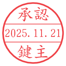 オプションの「電子透かし」をチェックし[生成]すると、見た目には分からないように、UNIXタイムスタンプを識別情報としてPNG形式の日付印に埋め込みます。 日付スタンプメーカーの使い方「部署」「名前」は最大8文字まで入力が可能です。「スタンプの色」を選択し、[生成]ボタン押下で印影画像が更新され、背景を透明に設定したPNG形式とPDF形式の印影画像がリンクからダウンロードできます。 オプションの「電子透かし」は、その性格上日付印ととても相性の良い付加サービスです。 別ページの「タイムスタンプと電子透かし」でも詳しく解説しますが、このオプションを追加することで、日付印が生成された日時に確かにその印が存在していることが証明されます。 ![]() 鍵主さんの電子印鑑が作れます。社内でのデータ書類閲覧確認用など、認印的な使い方のできる電子印鑑が作れます。 ![]() 古代文字で落款印が作れます。「落款スタンプメーカー」で作品を引き立たせる落款印が作れます。