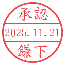オプションの「電子透かし」をチェックし[生成]すると、見た目には分からないように、UNIXタイムスタンプを識別情報としてPNG形式の日付印に埋め込みます。 日付スタンプメーカーの使い方「部署」「名前」は最大8文字まで入力が可能です。「スタンプの色」を選択し、[生成]ボタン押下で印影画像が更新され、背景を透明に設定したPNG形式とPDF形式の印影画像がリンクからダウンロードできます。 オプションの「電子透かし」は、その性格上日付印ととても相性の良い付加サービスです。 別ページの「タイムスタンプと電子透かし」でも詳しく解説しますが、このオプションを追加することで、日付印が生成された日時に確かにその印が存在していることが証明されます。 ![]() 鎌下さんの電子印鑑が作れます。社内でのデータ書類閲覧確認用など、認印的な使い方のできる電子印鑑が作れます。 ![]() 古代文字で落款印が作れます。「落款スタンプメーカー」で作品を引き立たせる落款印が作れます。