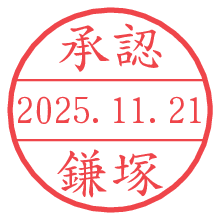 オプションの「電子透かし」をチェックし[生成]すると、見た目には分からないように、UNIXタイムスタンプを識別情報としてPNG形式の日付印に埋め込みます。 日付スタンプメーカーの使い方「部署」「名前」は最大8文字まで入力が可能です。「スタンプの色」を選択し、[生成]ボタン押下で印影画像が更新され、背景を透明に設定したPNG形式とPDF形式の印影画像がリンクからダウンロードできます。 オプションの「電子透かし」は、その性格上日付印ととても相性の良い付加サービスです。 別ページの「タイムスタンプと電子透かし」でも詳しく解説しますが、このオプションを追加することで、日付印が生成された日時に確かにその印が存在していることが証明されます。 ![]() 鎌塚さんの電子印鑑が作れます。社内でのデータ書類閲覧確認用など、認印的な使い方のできる電子印鑑が作れます。 ![]() 古代文字で落款印が作れます。「落款スタンプメーカー」で作品を引き立たせる落款印が作れます。