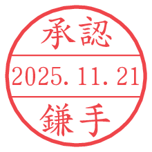 オプションの「電子透かし」をチェックし[生成]すると、見た目には分からないように、UNIXタイムスタンプを識別情報としてPNG形式の日付印に埋め込みます。 日付スタンプメーカーの使い方「部署」「名前」は最大8文字まで入力が可能です。「スタンプの色」を選択し、[生成]ボタン押下で印影画像が更新され、背景を透明に設定したPNG形式とPDF形式の印影画像がリンクからダウンロードできます。 オプションの「電子透かし」は、その性格上日付印ととても相性の良い付加サービスです。 別ページの「タイムスタンプと電子透かし」でも詳しく解説しますが、このオプションを追加することで、日付印が生成された日時に確かにその印が存在していることが証明されます。 ![]() 鎌手さんの電子印鑑が作れます。社内でのデータ書類閲覧確認用など、認印的な使い方のできる電子印鑑が作れます。 ![]() 古代文字で落款印が作れます。「落款スタンプメーカー」で作品を引き立たせる落款印が作れます。