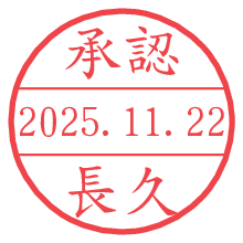 オプションの「電子透かし」をチェックし[生成]すると、見た目には分からないように、UNIXタイムスタンプを識別情報としてPNG形式の日付印に埋め込みます。 日付スタンプメーカーの使い方「部署」「名前」は最大8文字まで入力が可能です。「スタンプの色」を選択し、[生成]ボタン押下で印影画像が更新され、背景を透明に設定したPNG形式とPDF形式の印影画像がリンクからダウンロードできます。 オプションの「電子透かし」は、その性格上日付印ととても相性の良い付加サービスです。 別ページの「タイムスタンプと電子透かし」でも詳しく解説しますが、このオプションを追加することで、日付印が生成された日時に確かにその印が存在していることが証明されます。 ![]() 長久さんの電子印鑑が作れます。社内でのデータ書類閲覧確認用など、認印的な使い方のできる電子印鑑が作れます。 ![]() 古代文字で落款印が作れます。「落款スタンプメーカー」で作品を引き立たせる落款印が作れます。