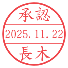 オプションの「電子透かし」をチェックし[生成]すると、見た目には分からないように、UNIXタイムスタンプを識別情報としてPNG形式の日付印に埋め込みます。 日付スタンプメーカーの使い方「部署」「名前」は最大8文字まで入力が可能です。「スタンプの色」を選択し、[生成]ボタン押下で印影画像が更新され、背景を透明に設定したPNG形式とPDF形式の印影画像がリンクからダウンロードできます。 オプションの「電子透かし」は、その性格上日付印ととても相性の良い付加サービスです。 別ページの「タイムスタンプと電子透かし」でも詳しく解説しますが、このオプションを追加することで、日付印が生成された日時に確かにその印が存在していることが証明されます。 ![]() 長木さんの電子印鑑が作れます。社内でのデータ書類閲覧確認用など、認印的な使い方のできる電子印鑑が作れます。 ![]() 古代文字で落款印が作れます。「落款スタンプメーカー」で作品を引き立たせる落款印が作れます。