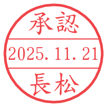 オプションの「電子透かし」をチェックし[生成]すると、見た目には分からないように、UNIXタイムスタンプを識別情報としてPNG形式の日付印に埋め込みます。 日付スタンプメーカーの使い方「部署」「名前」は最大8文字まで入力が可能です。「スタンプの色」を選択し、[生成]ボタン押下で印影画像が更新され、背景を透明に設定したPNG形式とPDF形式の印影画像がリンクからダウンロードできます。 オプションの「電子透かし」は、その性格上日付印ととても相性の良い付加サービスです。 別ページの「タイムスタンプと電子透かし」でも詳しく解説しますが、このオプションを追加することで、日付印が生成された日時に確かにその印が存在していることが証明されます。 ![]() 長松さんの電子印鑑が作れます。社内でのデータ書類閲覧確認用など、認印的な使い方のできる電子印鑑が作れます。 ![]() 古代文字で落款印が作れます。「落款スタンプメーカー」で作品を引き立たせる落款印が作れます。