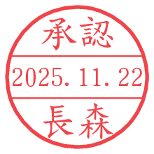 オプションの「電子透かし」をチェックし[生成]すると、見た目には分からないように、UNIXタイムスタンプを識別情報としてPNG形式の日付印に埋め込みます。 日付スタンプメーカーの使い方「部署」「名前」は最大8文字まで入力が可能です。「スタンプの色」を選択し、[生成]ボタン押下で印影画像が更新され、背景を透明に設定したPNG形式とPDF形式の印影画像がリンクからダウンロードできます。 オプションの「電子透かし」は、その性格上日付印ととても相性の良い付加サービスです。 別ページの「タイムスタンプと電子透かし」でも詳しく解説しますが、このオプションを追加することで、日付印が生成された日時に確かにその印が存在していることが証明されます。 ![]() 長森さんの電子印鑑が作れます。社内でのデータ書類閲覧確認用など、認印的な使い方のできる電子印鑑が作れます。 ![]() 古代文字で落款印が作れます。「落款スタンプメーカー」で作品を引き立たせる落款印が作れます。