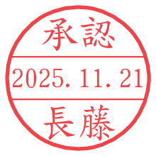 オプションの「電子透かし」をチェックし[生成]すると、見た目には分からないように、UNIXタイムスタンプを識別情報としてPNG形式の日付印に埋め込みます。 日付スタンプメーカーの使い方「部署」「名前」は最大8文字まで入力が可能です。「スタンプの色」を選択し、[生成]ボタン押下で印影画像が更新され、背景を透明に設定したPNG形式とPDF形式の印影画像がリンクからダウンロードできます。 オプションの「電子透かし」は、その性格上日付印ととても相性の良い付加サービスです。 別ページの「タイムスタンプと電子透かし」でも詳しく解説しますが、このオプションを追加することで、日付印が生成された日時に確かにその印が存在していることが証明されます。 ![]() 長藤さんの電子印鑑が作れます。社内でのデータ書類閲覧確認用など、認印的な使い方のできる電子印鑑が作れます。 ![]() 古代文字で落款印が作れます。「落款スタンプメーカー」で作品を引き立たせる落款印が作れます。
