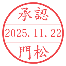 オプションの「電子透かし」をチェックし[生成]すると、見た目には分からないように、UNIXタイムスタンプを識別情報としてPNG形式の日付印に埋め込みます。 日付スタンプメーカーの使い方「部署」「名前」は最大8文字まで入力が可能です。「スタンプの色」を選択し、[生成]ボタン押下で印影画像が更新され、背景を透明に設定したPNG形式とPDF形式の印影画像がリンクからダウンロードできます。 オプションの「電子透かし」は、その性格上日付印ととても相性の良い付加サービスです。 別ページの「タイムスタンプと電子透かし」でも詳しく解説しますが、このオプションを追加することで、日付印が生成された日時に確かにその印が存在していることが証明されます。 ![]() 門松さんの電子印鑑が作れます。社内でのデータ書類閲覧確認用など、認印的な使い方のできる電子印鑑が作れます。 ![]() 古代文字で落款印が作れます。「落款スタンプメーカー」で作品を引き立たせる落款印が作れます。